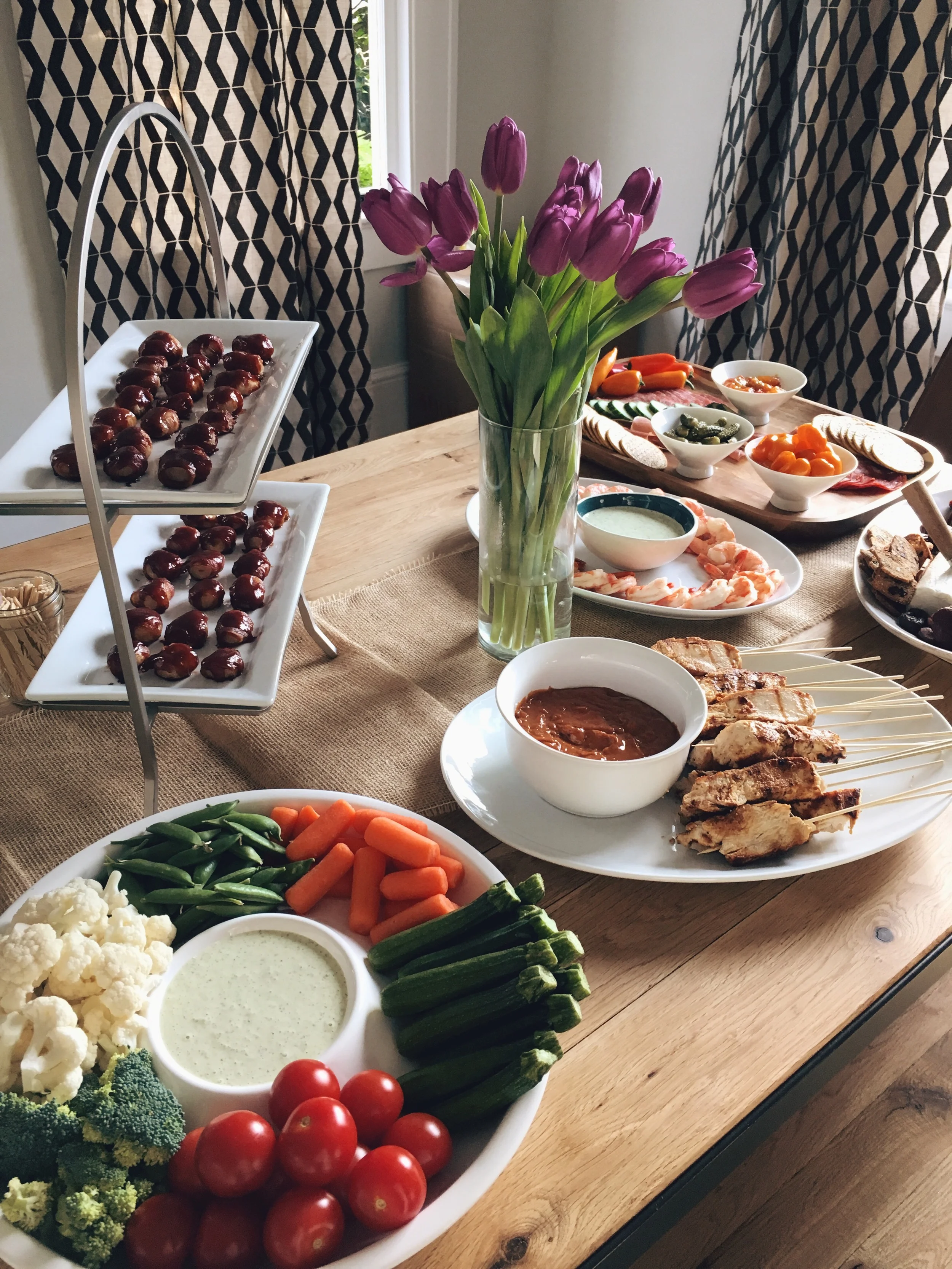 Yesterday, I got to fulfill a small piece of my self-imposed destiny. We showered some of our best friends-- who are expecting a baby girl any day now!-- and I got to feed the people. I enjoyed every moment of it. I made my Memaw's BBQ bacon-wrapped water chestnuts and my own pimento cheese and bacon deviled eggs with chives in honor or my Nana plus a slew of other platters and plates. (For the record: bacon forevaah.)